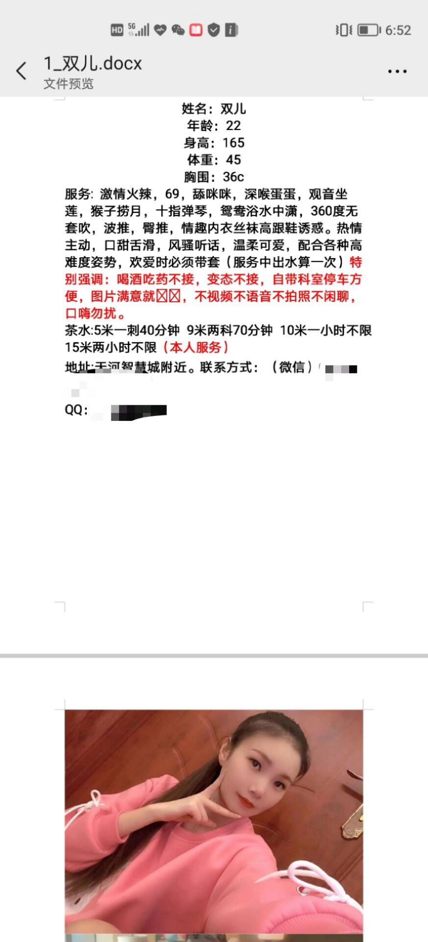 票价6张,条女颜值唔错,身材索,够嫩口,望距相册,怀疑系鸡头代聊,但系6张鸡头应该抽唔到咩水,重要既系唔会货不对版,人照8成似,服务态度唔错,只要唔过分既,正常既,都可以满足,最近条女穷,有无善心人士去玩残距?