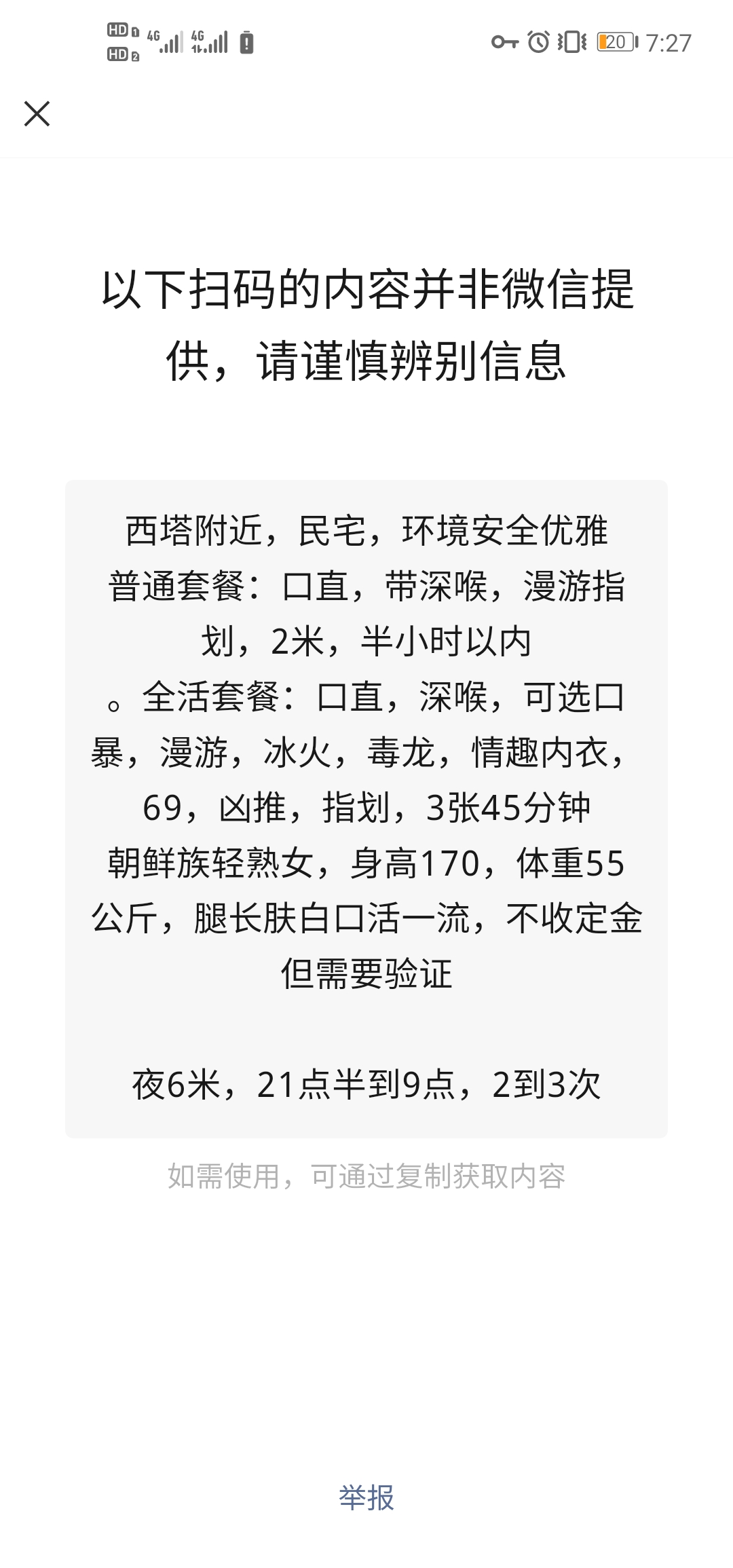 票价3张,没试过,朋友推荐的,最近发现铁西很多嫩口小妹,不知道是不是鸡头带的,不过就卖3张,相信鸡头没有任何利润空间了,看上去颜值不错,挺年轻的,有时间冒险的朋友可以试试,看到货不对版马上转头走,第一个汇报的朋友可以免费领一个新的