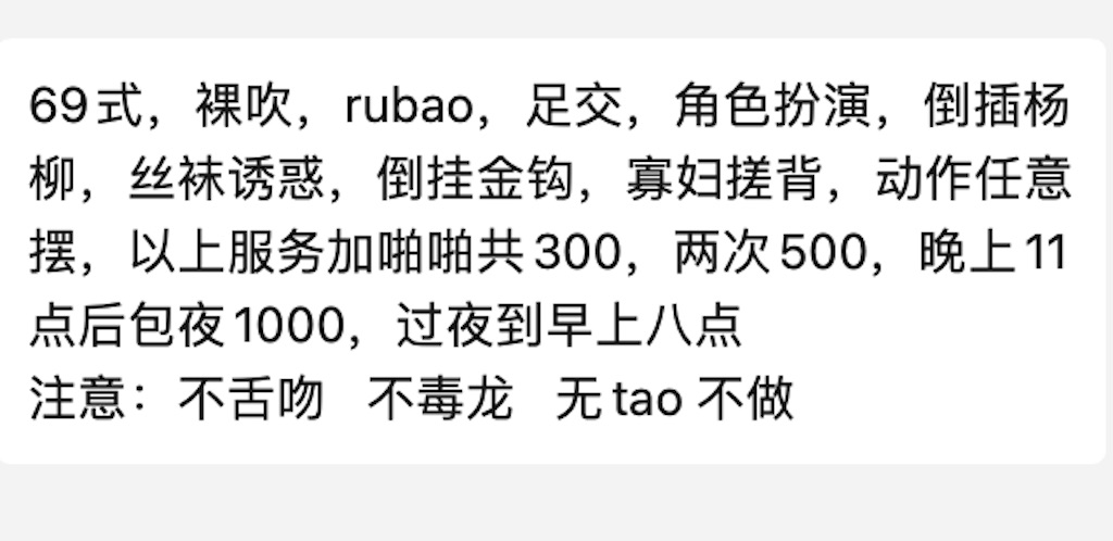 票价4.5张,妹子颜值身材不错,人照8成似,遗憾胸有点小,但是两粒乳头比较敏感,喜欢嫩口的朋友可以试试,服务态度不错,很有礼貌,不催人不死妈脸,总结来说性价比不错,4.5张只是快餐的价钱,泻火一流,最近妹子遇到一点小困难,有善心人士去救助她吗?